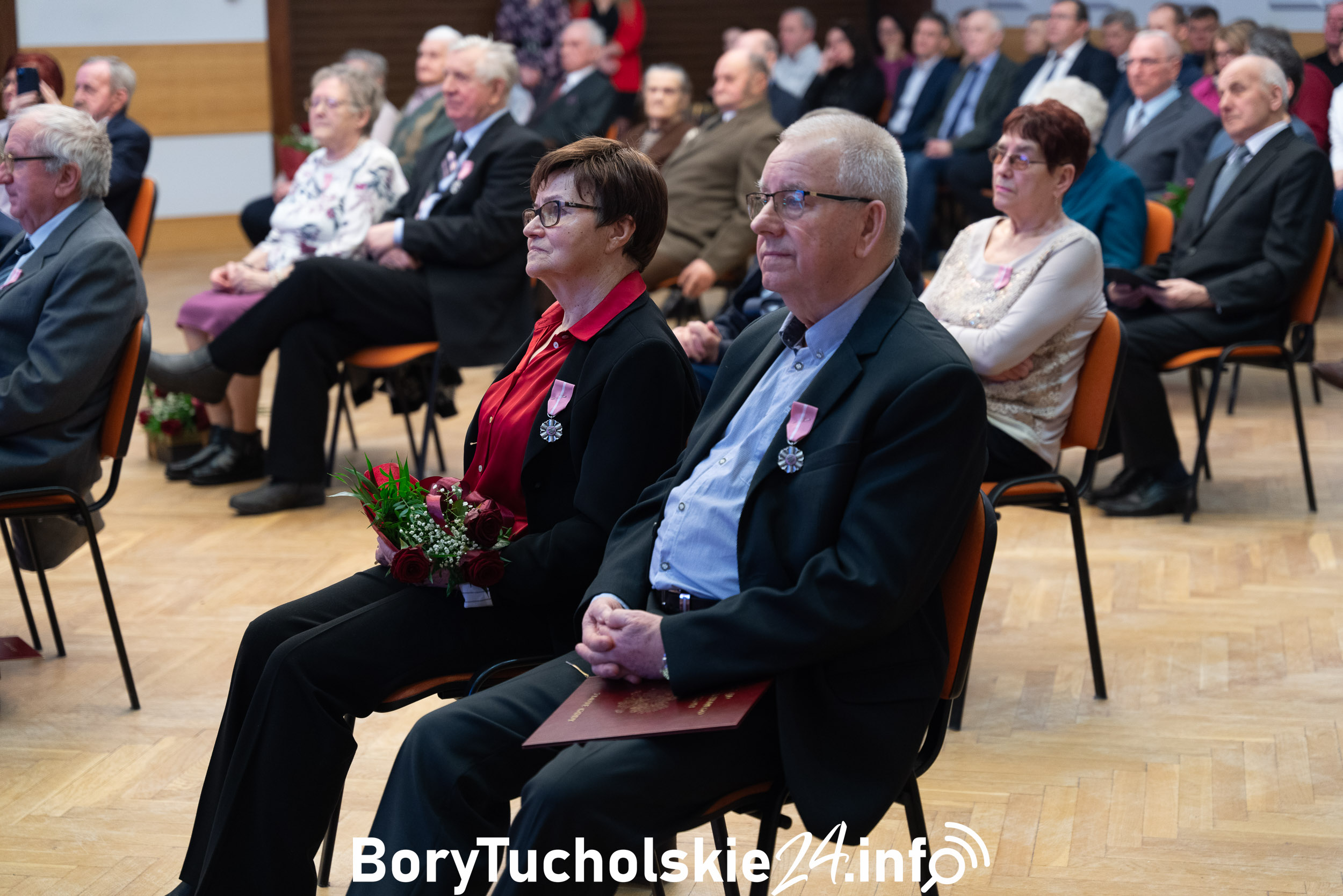 Spośród przybyłych par, 15 zostało uhonorowanych medalami za długoletnie pożycie małżeńskie. Odznaczenia, przyznane w imieniu Prezydenta RP, wręczył burmistrz Tucholi. Wyróżnienie to jest symbolem uznania dla trwałości więzi małżeńskich i wspólnie przeżytych lat.