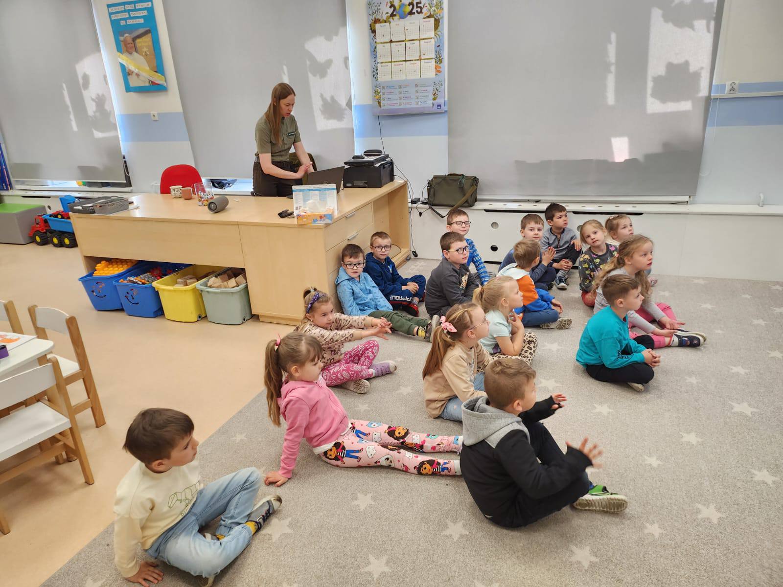 Paulina Ochlik z Nadleśnictwa Czersk opowiadała dzieciom z oddziału zerowego Szkoły Podstawowej nr 2 im. Jana Pawła II w Czersku o wiosennych zmianach zachodzących w lesie.