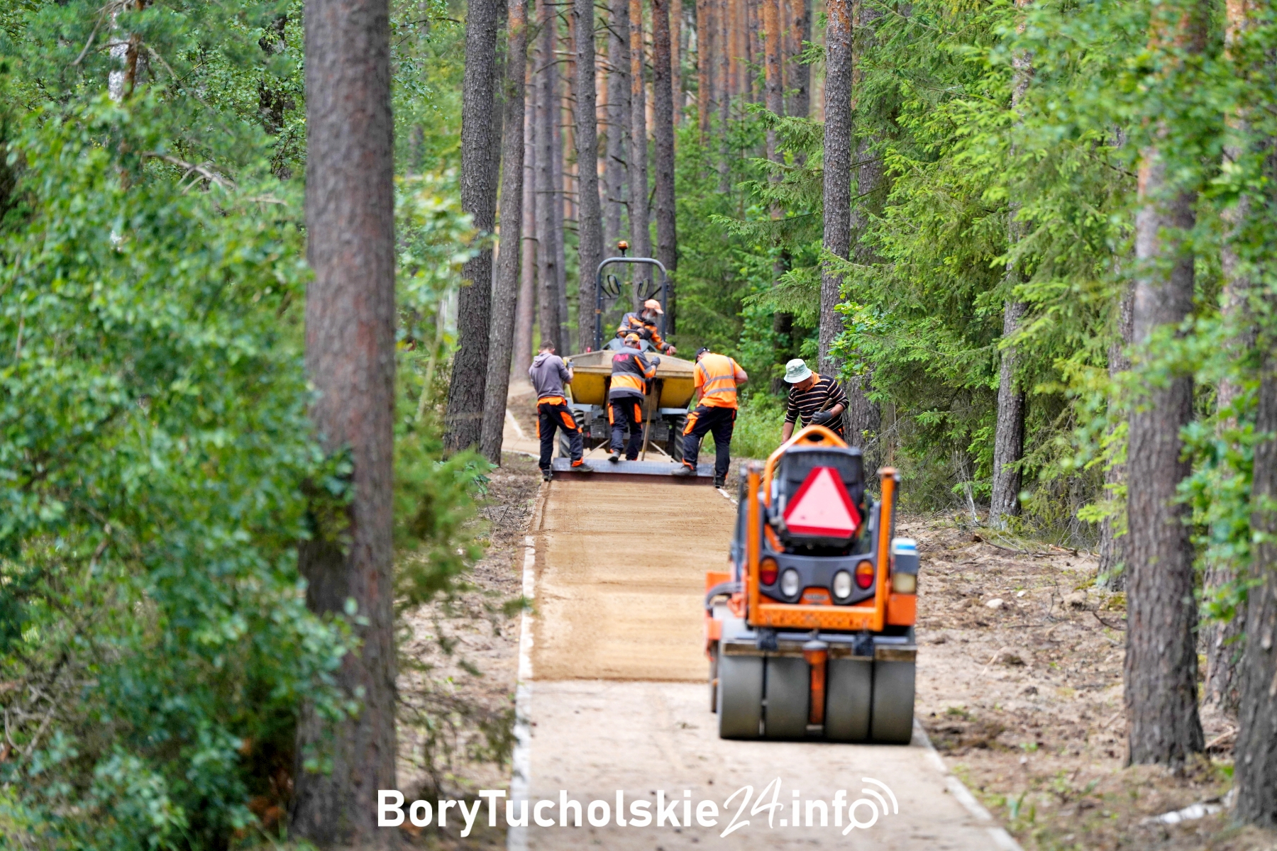 Budowa ostatniego etapu ścieżki rowerowej między Tucholą a Cekcynem postępuje dynamicznie. Już teraz na placu budowy widać wyraźne efekty prac, a wykonawca nie zwalnia tempa. Trasa wiedzie przez malownicze tereny leśne i w przyszłości stanie się częścią większej pętli rowerowej łączącej Tucholę, Cekcyn i Bysław.