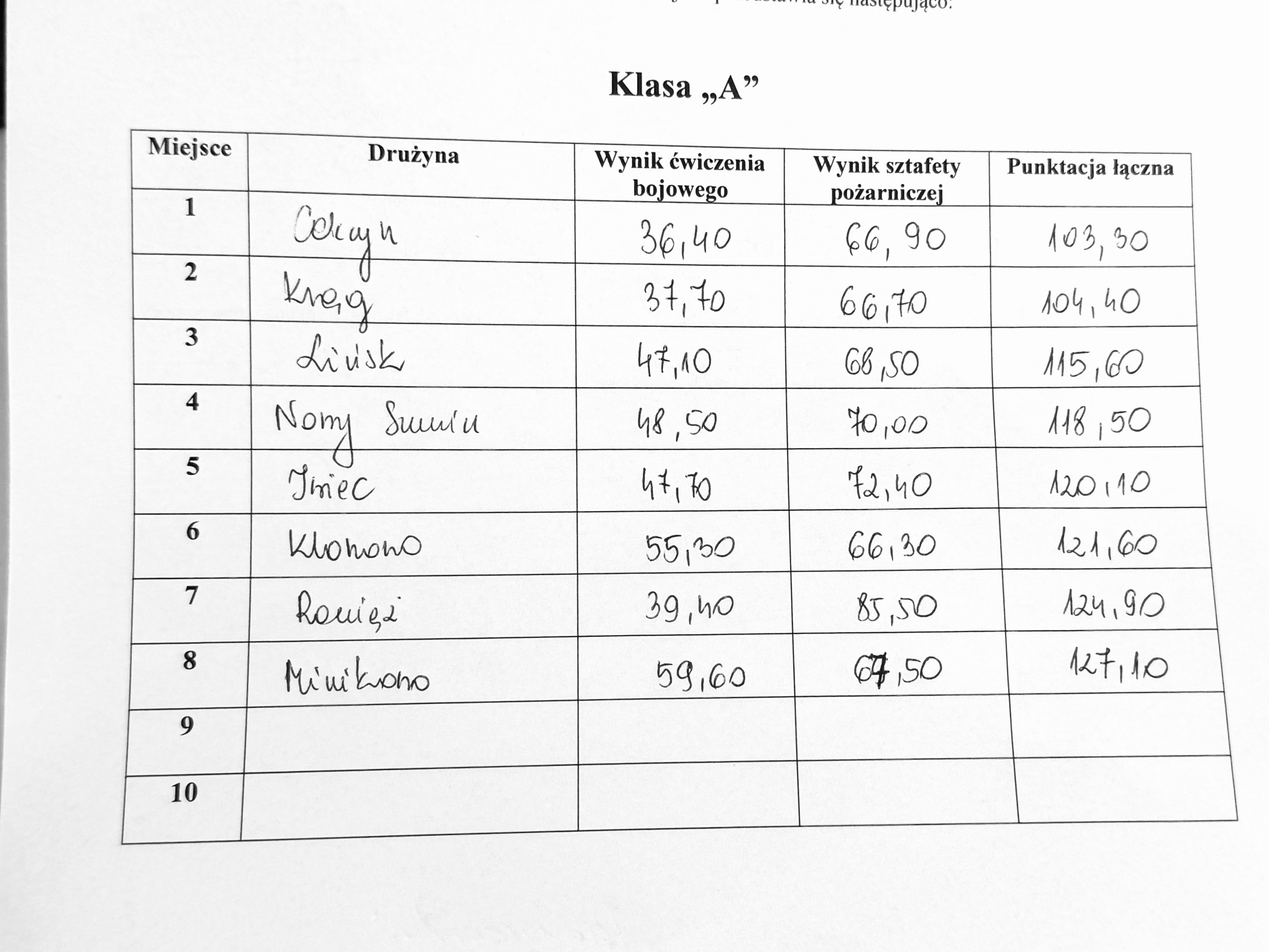 W rywalizacji żeńskiej najlepsze okazały się druhny z OSP w Cekcynie, które minimalnie wyprzedziły reprezentację OSP z Bysławka. Drużyna z Bysławka otrzymała także puchar za najlepszą musztrę.