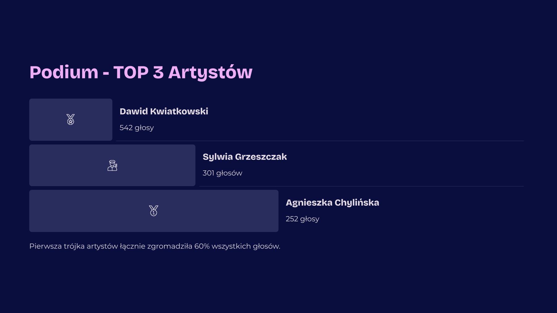 Zainteresowanie ankietą było bardzo duże – oddano około dwóch tysięcy głosów, z czego 1815 uznano za ważne. Zdecydowanym zwycięzcą został Dawid Kwiatkowski, który zdobył ponad 30% wszystkich głosów.