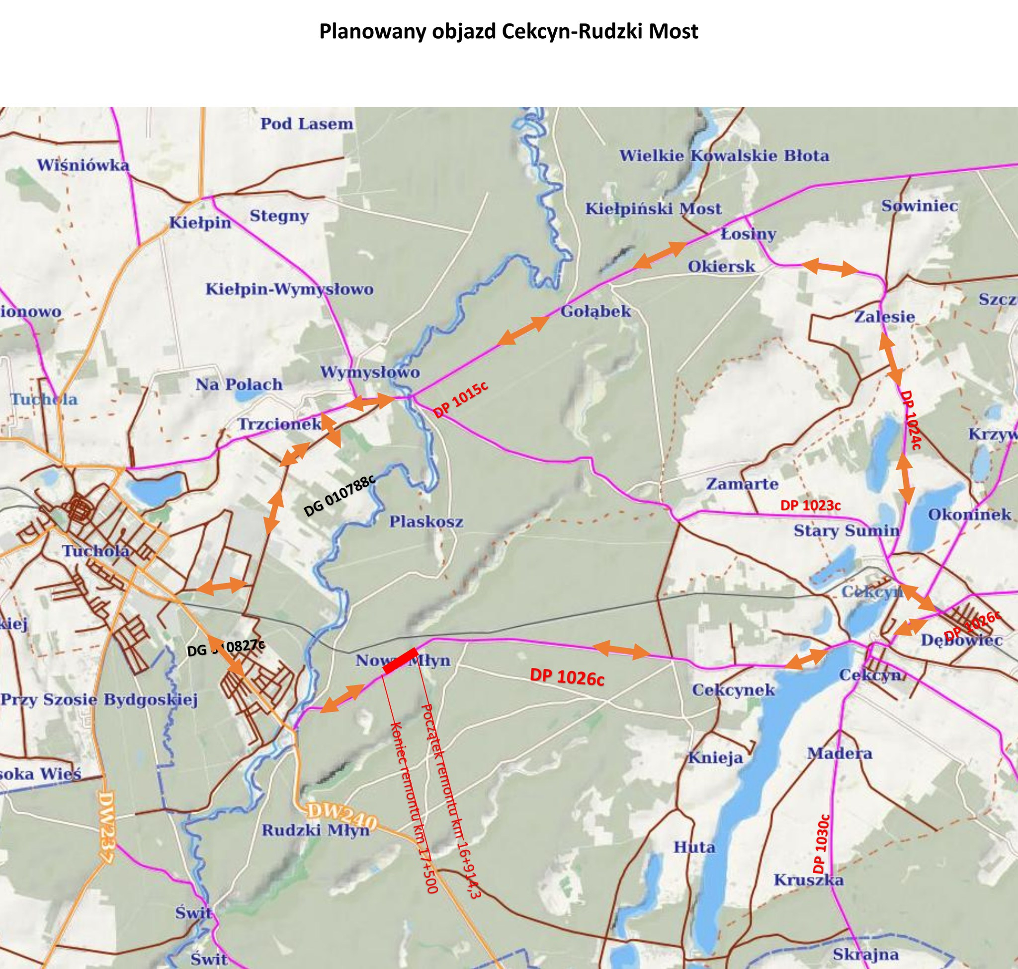 To kolejny etap inwestycji realizowanej przez powiat tucholski. Od środy, 8 października, droga w okolicy miejscowości Nowy Młyn będzie zamknięta dla ruchu. Zarząd Dróg Powiatowych wyznaczył objazdy przez Zalesie i Okiersk.