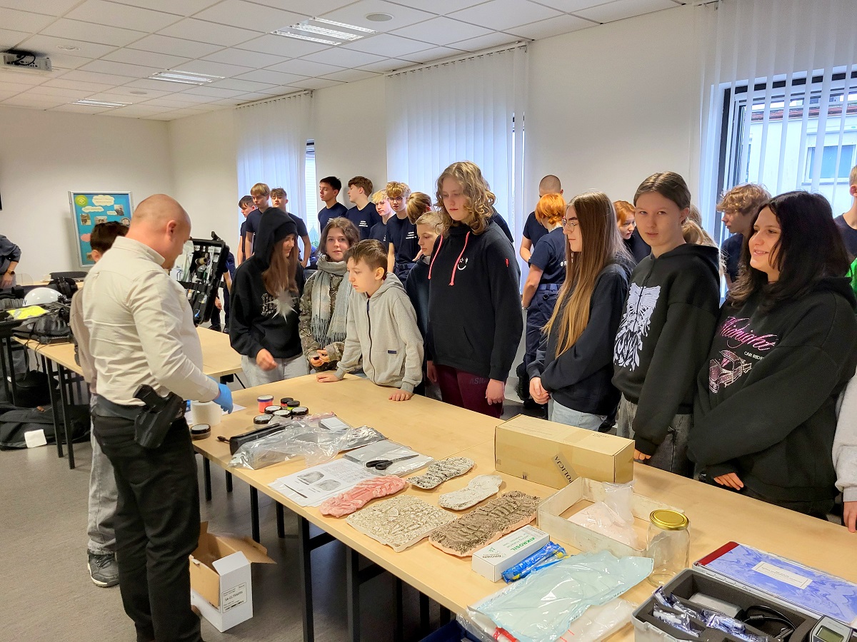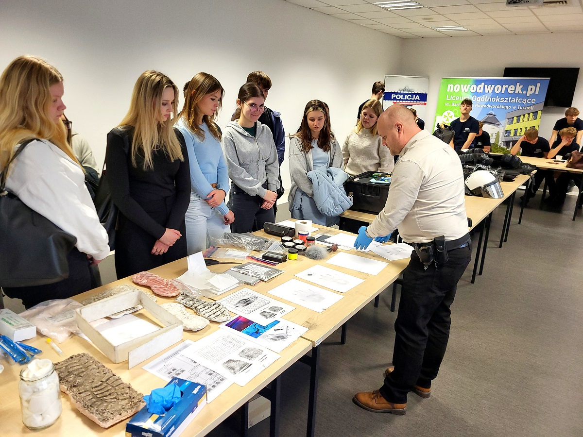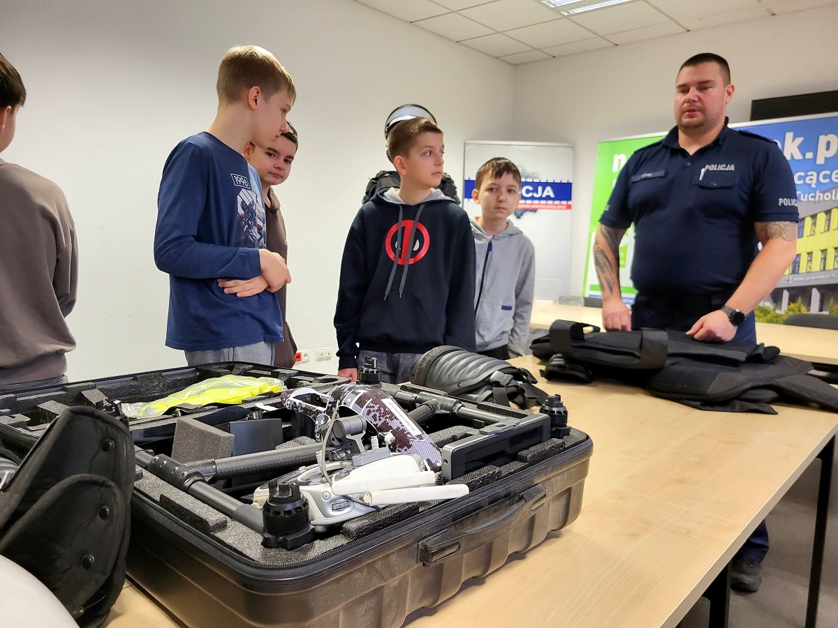 W tucholskiej Komendzie Powiatowej Policji odbyło się spotkanie, podczas którego funkcjonariusze zaprezentowali zainteresowanym swoje codzienne obowiązki oraz wyposażenie wykorzystywane w służbie. Uczestnicy mogli zwiedzić budynek komendy, w tym policyjny areszt i siłownię, a także sprawdzić swoje umiejętności na wirtualnej strzelnicy. Podczas wydarzenia policjanci z pionu kryminalnego i prewencji opowiadali o specyfice swojej pracy, odpowiadali na pytania oraz omawiali wykorzystywane narzędzia. W inicjatywę włączyli się również uczniowie klasy mundurowej z tucholskiego „Nowodworka”, którzy chętnie dzielili się doświadczeniami z młodszymi uczestnikami wydarzenia. Dla młodzieży ze szkół podstawowych była to okazja do poznania kulis służby w Policji oraz rozmowy z rówieśnikami realizującymi naukę w profilu mundurowym.