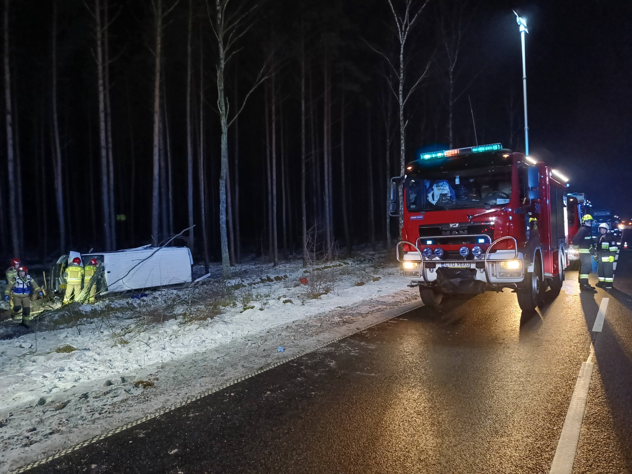 Ze wstępnych ustaleń funkcjonariuszy wynika, że 47-letni kierowca Volkswagena stracił panowanie nad pojazdem, w wyniku czego zjechał z drogi, a następnie dachował. Kierowca jest mieszkańcem powiatu świeckiego. Na miejscu działały jednostki OSP w Bysławiu oraz KP PSP w Tucholi, ZRM oraz policja. Mężczyzna został przetransportowany do szpitala na badania. Funkcjonariusze wykonali oględziny miejsca zdarzenia i rozbitego pojazdu, a także przesłuchali świadków. Od 47-latka pobrano krew do dalszych badań. - Po sprawdzeniu jego danych w policyjnych systemach ustalono, że posiada 2 sądowe zakazy kierowania pojazdami - przekazał oficer prasowy KPP w Tucholi Łukasz Tomaszewski.