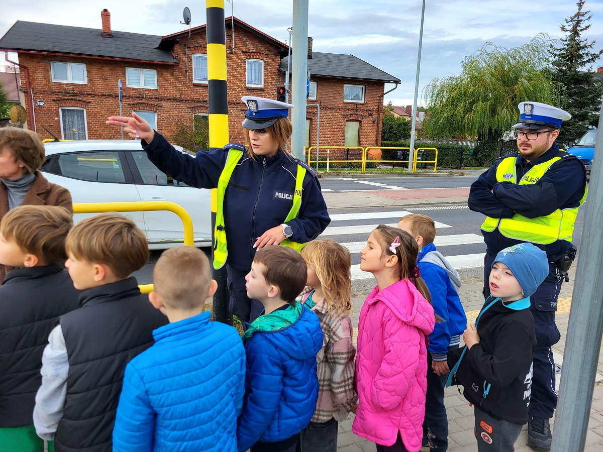 Policjanci uczyli dzieci, jak przechodzić przez jezdnię