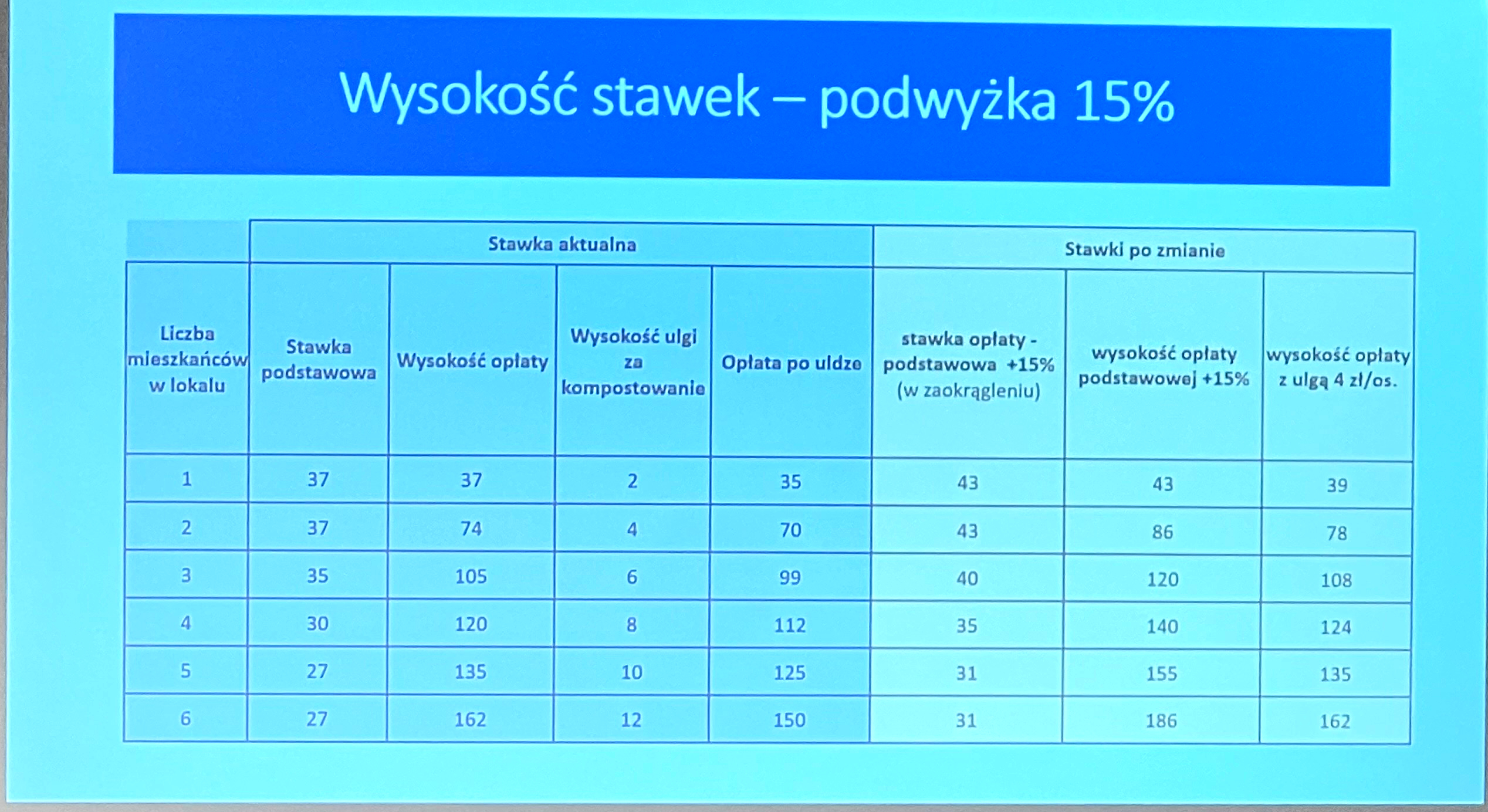 Wysokość stawek za wywóz śmieci: