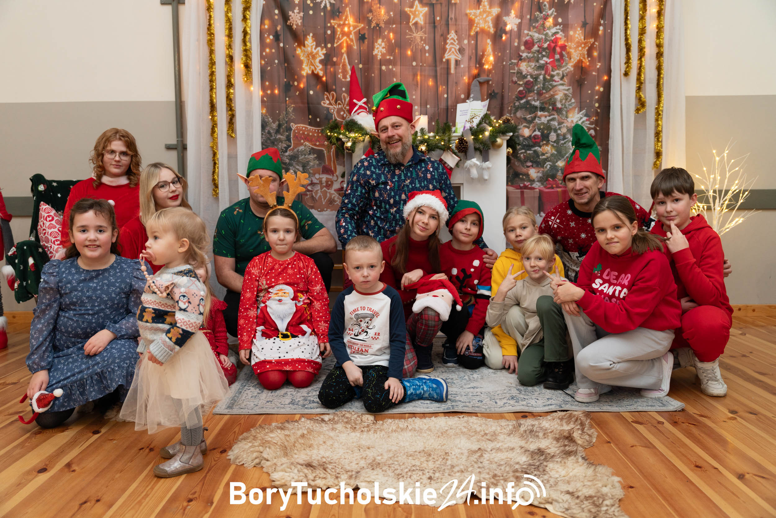 Na małych gości czekały elfy i mikołajki, które przygotowały mnóstwo atrakcji. Kolorowe stoiska zapełniły się dziecięcą wyobraźnią, gdy maluchy z entuzjazmem przystępowały do kolorowania świątecznych rysunków. W sąsiedniej części sali trwały warsztaty tworzenia ozdób choinkowych. Największym hitem okazało się jednak zdobienie pierników. Każde dziecko mogło stworzyć swoją słodką, unikatową dekorację, pokrywając pierniki lukrem w fantazyjnych wzorach i obsypując je cukrowymi posypkami. Kulminacyjnym momentem wydarzenia było wspólne zawieszanie wykonanych ozdób na dużej, pięknie pachnącej choince, która stanęła w centralnym punkcie sali. Dzieci, z dumą prezentując swoje dzieła, wspólnie z rodzinami i organizatorami zaśpiewały kolędy, tworząc magiczną aurę jedności i świątecznego ciepła.