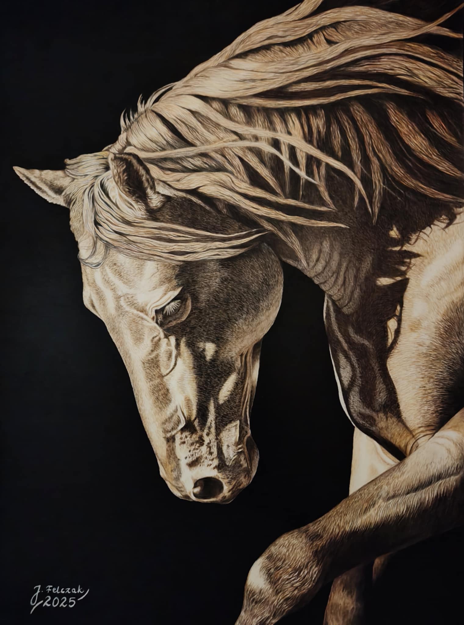 W swoich pracach Felczak wykorzystuje akryl, olej oraz rysunek kredką i ołówkiem, koncentrując się na precyzyjnym studium anatomii, światła i faktury. W centrum jego zainteresowań znajdują się zwierzęta - w szczególności konie i psy. Jak sam podkreśla, nie ma piękniejszych i bardziej wdzięcznych zwierząt do przedstawienia na płótnie niż konie, dlatego motyw tych zwierząt będzie szczególnie widoczny w jego twórczości.